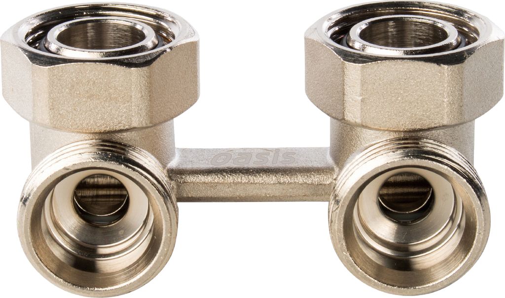 Узлы нижнего подключения Oasis используются в двухтрубных системах отопления для подключения радиаторов, имеющих нижние подсоединения. Такие узлы удобно использовать при нижней скрытой разводке трубопроводов к радиатору. Они позволяют избежать скрытых соединений трубопроводов и повысить надежность системы. Узел подключается крадиатору посредством резьбового соединения с самоуплотняющимся седлом, либо с помощью самоуплотняющегося адаптера. Такая конструкция обеспечивает разъемное герметичное соединение узла с радиатором без использования дополнительных уплотнительных материалов.